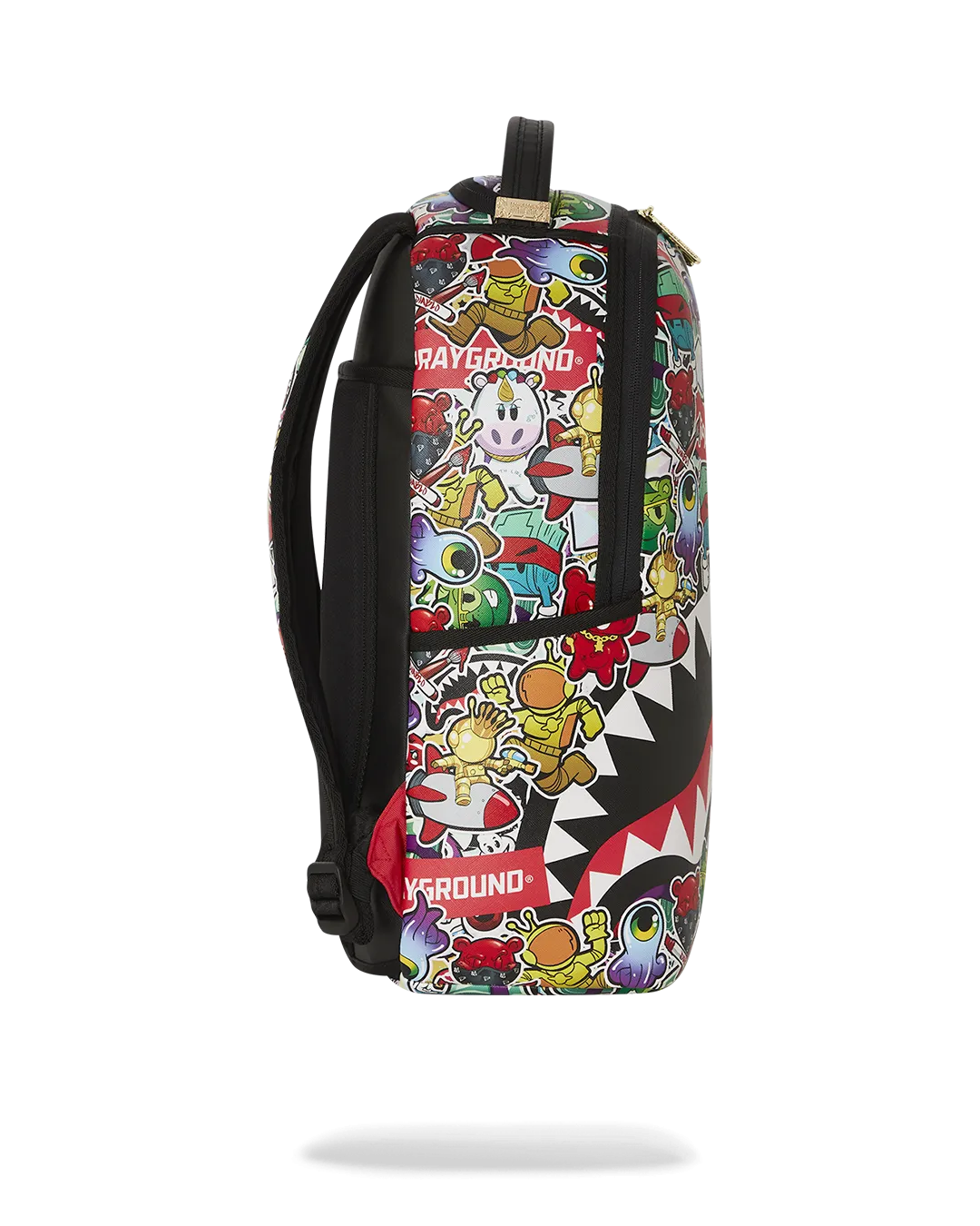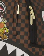 Dimensions: 18″ x 6″ x 11.5″ ? Front zipper pocket ? Side pockets ? Zippered Stash pocket ? Separate velour sunglass compartment ? Ergonomic mesh back padding ? Adjustable Straps for custom sizing ? Gold zippers with metal hardware ? Metal “Sprayground Authentic” badge ? Slide through back sleeve connects to carry-on luggage to free your hands