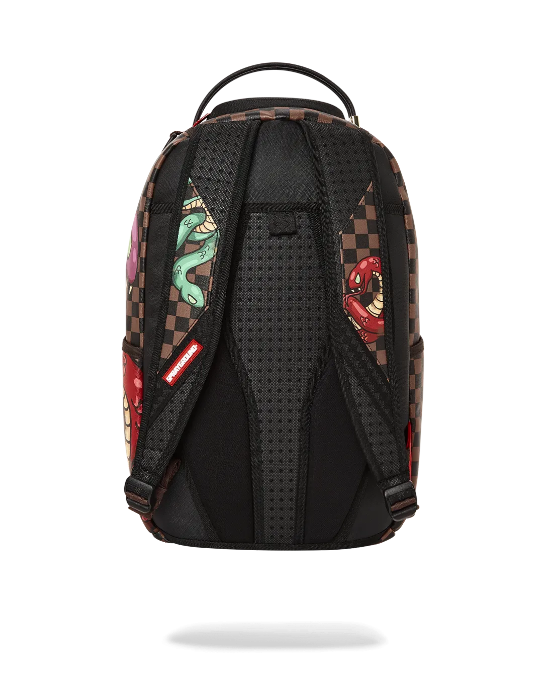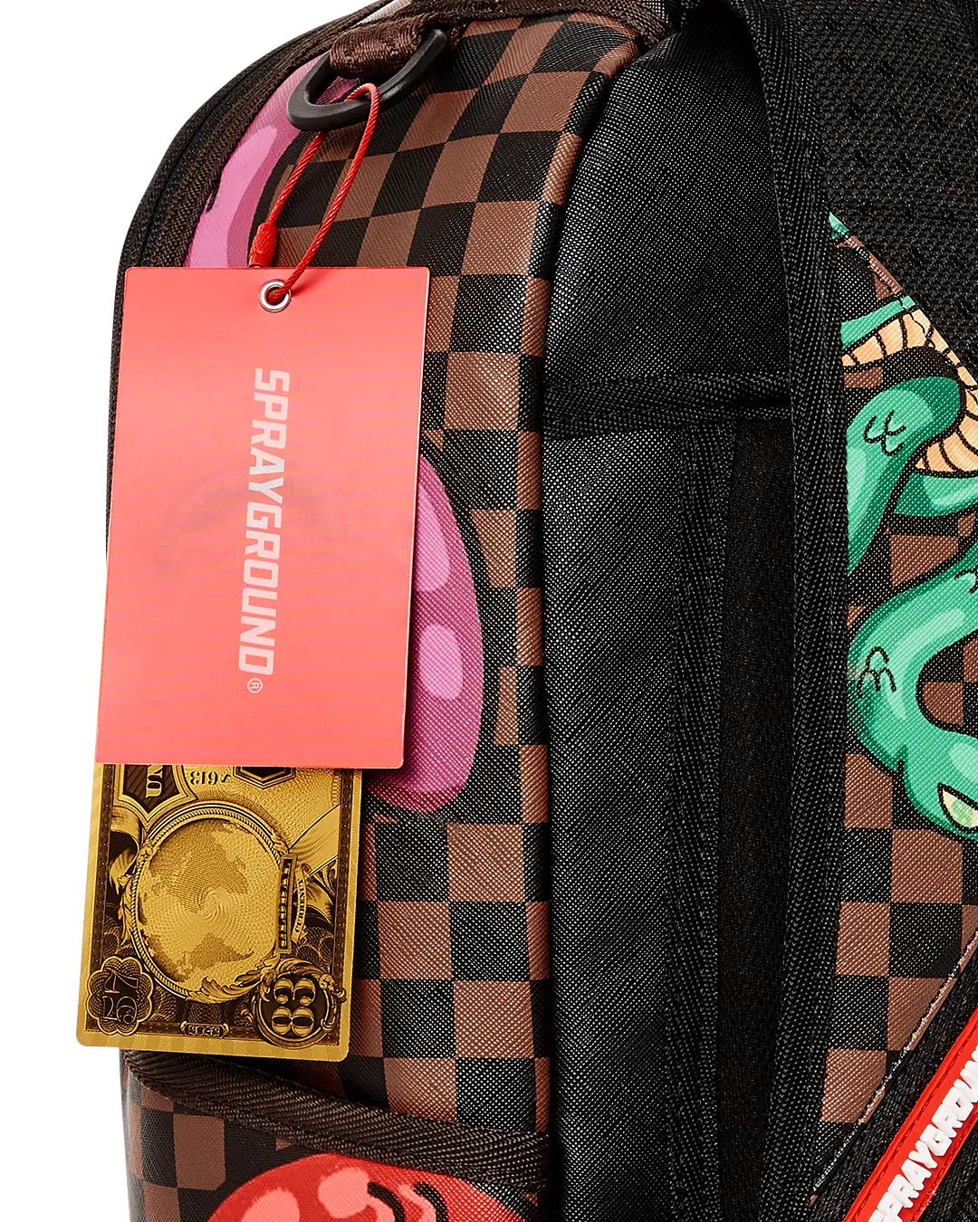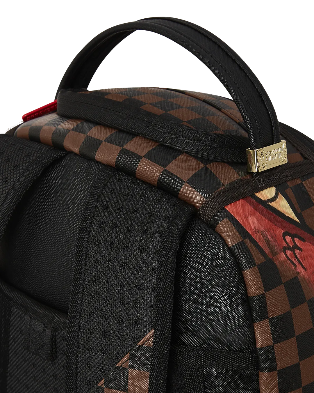 Dimensions: 18″ x 6″ x 11.5″ ? Front zipper pocket ? Side pockets ? Zippered Stash pocket ? Separate velour sunglass compartment ? Ergonomic mesh back padding ? Adjustable Straps for custom sizing ? Gold zippers with metal hardware ? Metal “Sprayground Authentic” badge ? Slide through back sleeve connects to carry-on luggage to free your hands