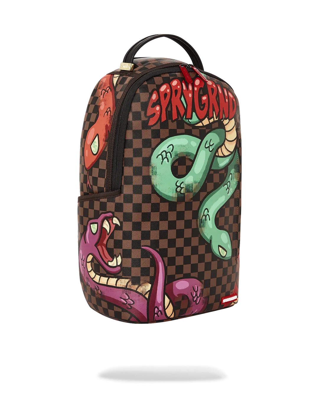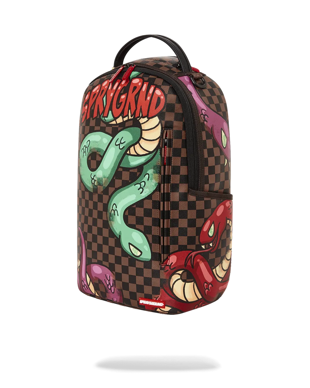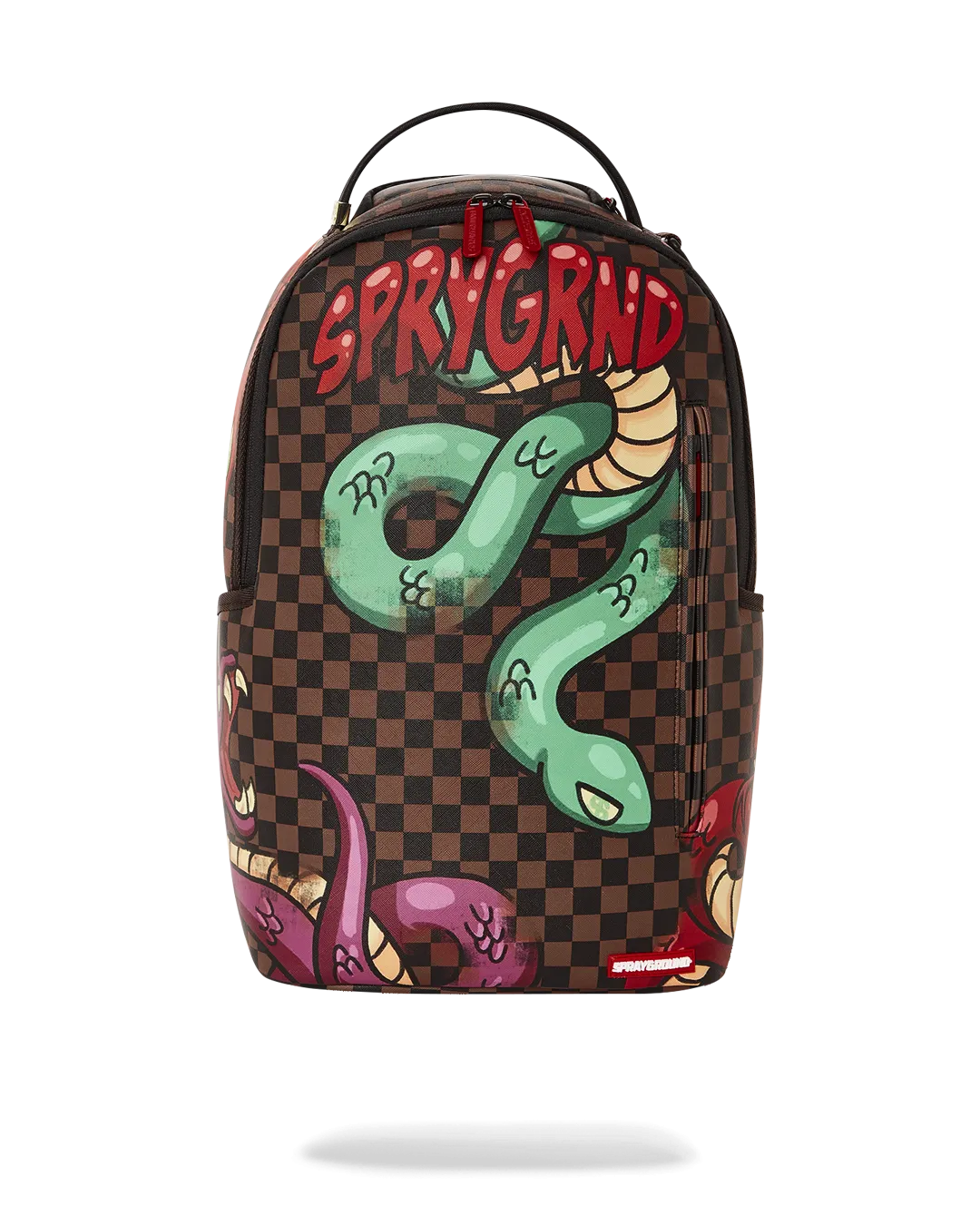 Dimensions: 18″ x 6″ x 11.5″ ? Front zipper pocket ? Side pockets ? Zippered Stash pocket ? Separate velour sunglass compartment ? Ergonomic mesh back padding ? Adjustable Straps for custom sizing ? Gold zippers with metal hardware ? Metal “Sprayground Authentic” badge ? Slide through back sleeve connects to carry-on luggage to free your hands
