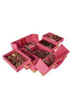 Red velour lining, Tiered shelving, removable tray, ?interior mirror.
