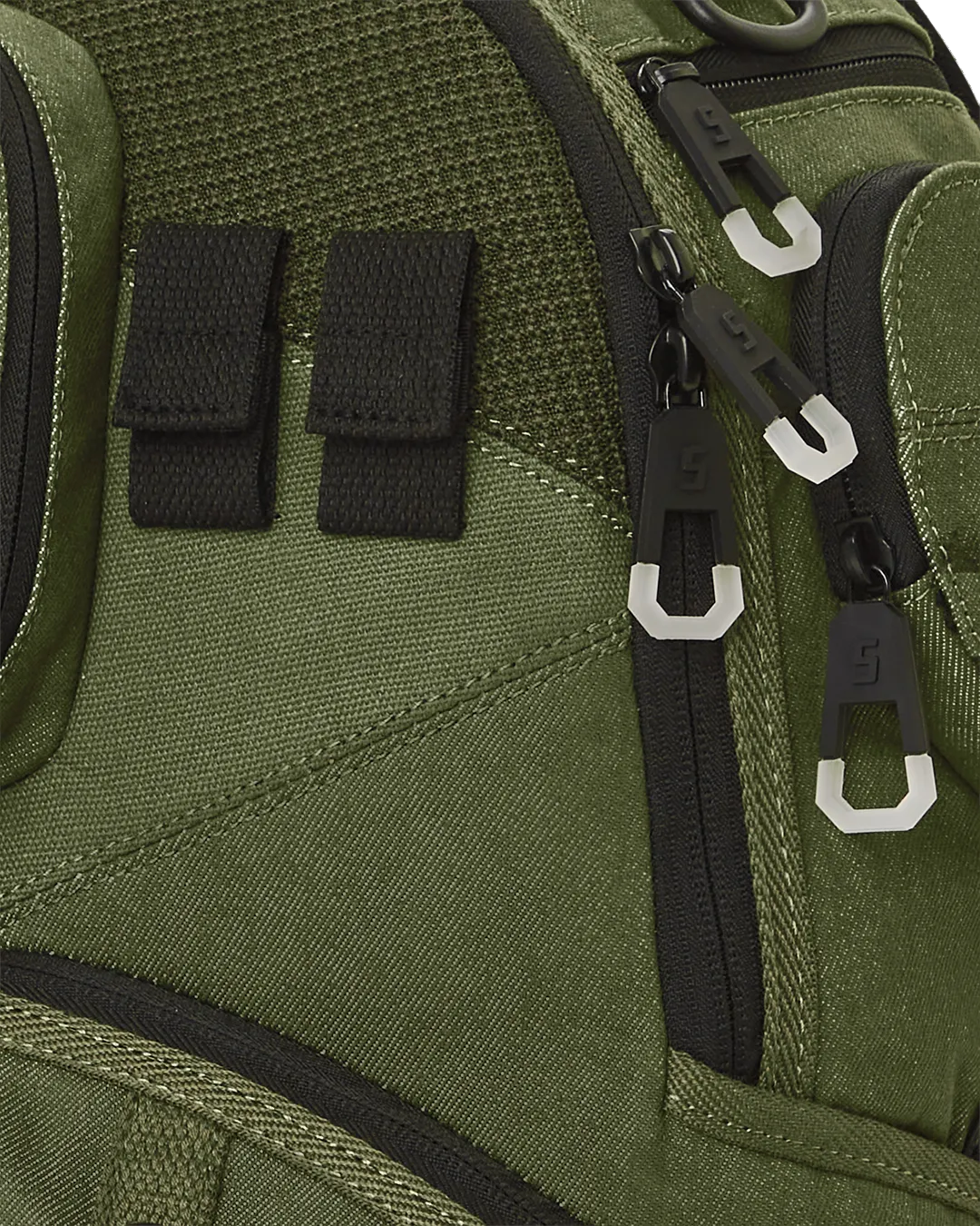 Dimensions: 18″ x 6″ x 11.5″ ? Front zipper pocket ? Side pockets ? Zippered Stash pocket ? Separate velour sunglass compartment ? Adjustable Straps for custom sizing ? Gold zippers with metal hardware ? Metal “Sprayground Authentic” badge?