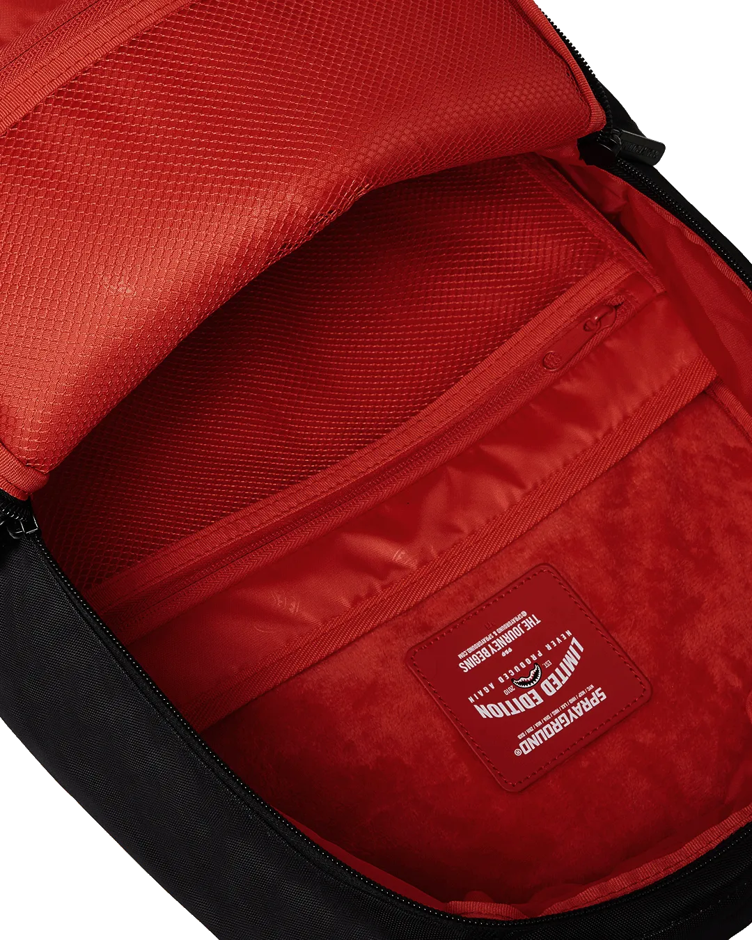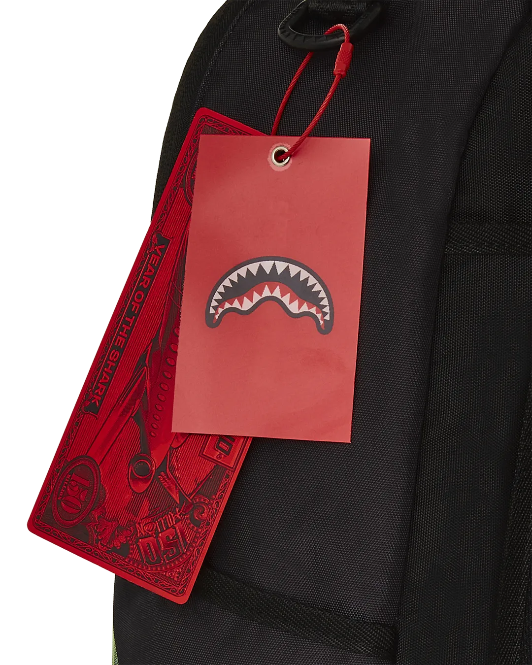 Dimensions: 18″ x 6″ x 11.5″ ? Front zipper pocket ? Side pockets ? Zippered Stash pocket ? Separate velour sunglass compartment ? Ergonomic mesh back padding ? Adjustable Straps for custom sizing ? Gold zippers with metal hardware ? Metal “Sprayground Authentic” badge ? Slide through back sleeve connects to carry-on luggage to free your hands