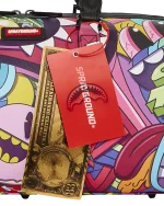 Dimensions: 8″ x 7.5″ x 13″?? Metal zipper pocket??Back Zippers ?Zippered sneaker pocket ? gold zippers ? Adjustable Straps for custom sizing ?Metal Zippers with Metal Hardware ? bag of Sprayground money