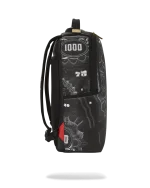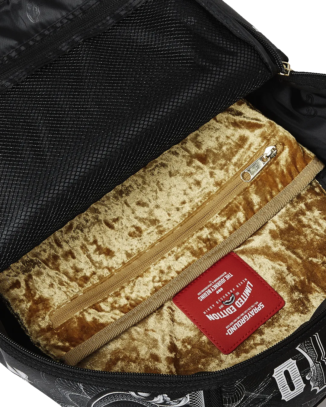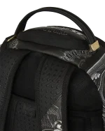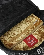 Dimensions: 18″ x 6″ x 11.5″ ? Front zipper pocket ? Side pockets ? Zippered Stash pocket ? Separate velour sunglass compartment ? Ergonomic mesh back padding ? Adjustable Straps for custom sizing ? Gold zippers with metal hardware ? Metal “Sprayground Authentic” badge ? Slide through back sleeve connects to carry-on luggage to free your hands