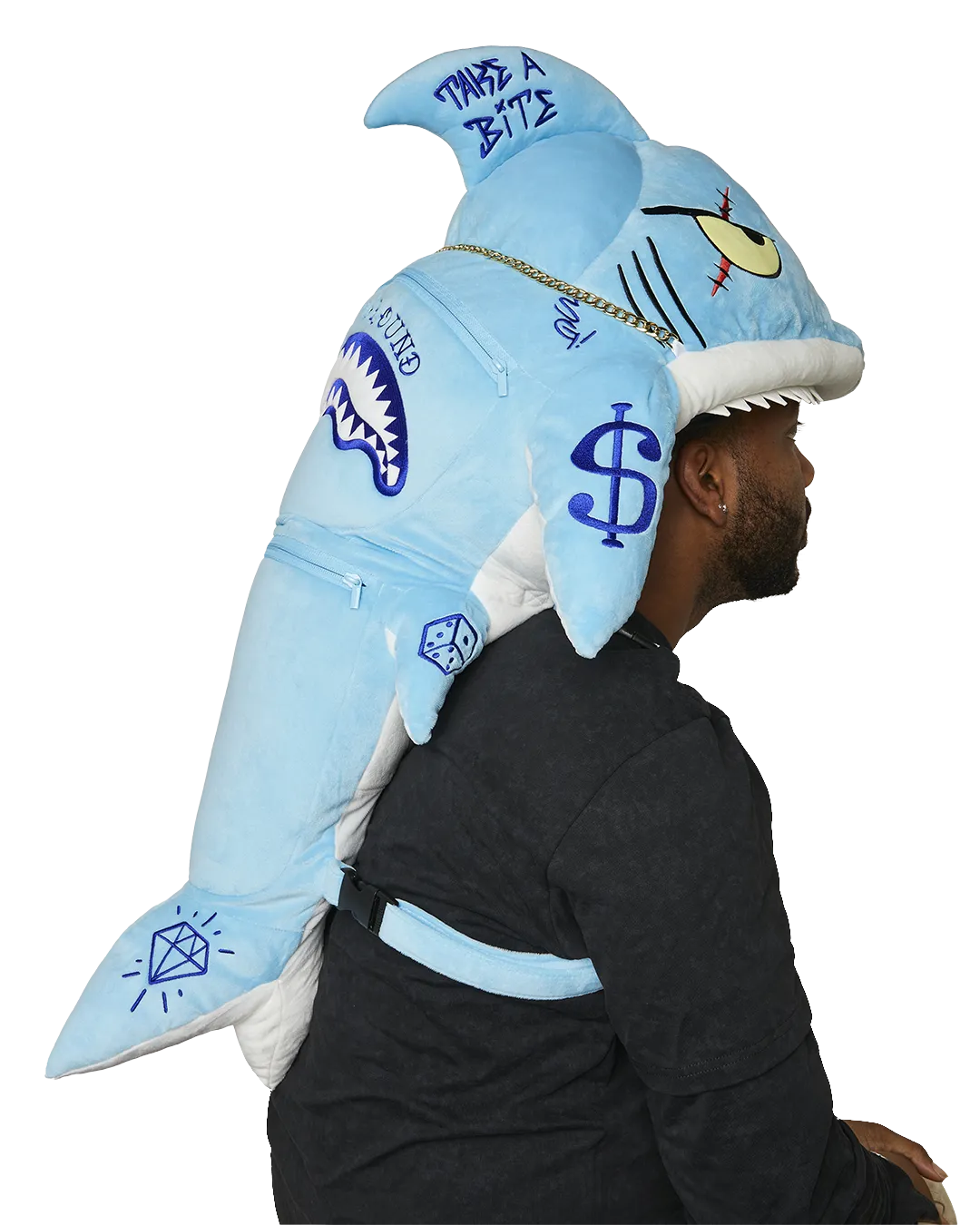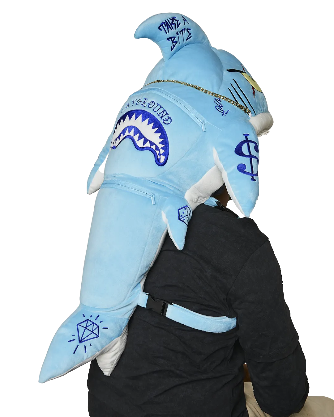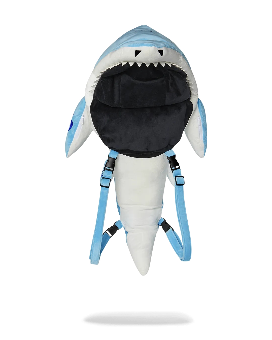 WELCOME TO THE SHARK SQUAD! Shark backpack with two functioning pockets similar to moneybear. The mouth fits snug around your head to provide comfort within the jaws of the shark.