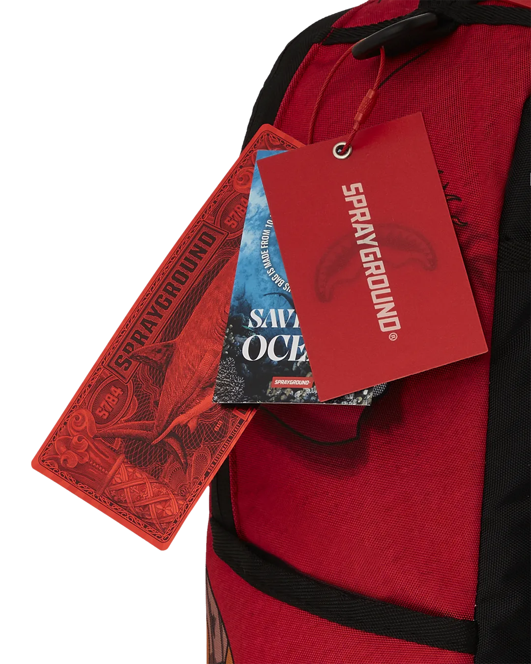Dimensions: 18″ x 6″ x 11.5″ ? Front zipper pocket ? Side pockets ? Zippered Stash pocket ? Separate velour sunglass compartment ? Ergonomic mesh back padding ? Adjustable Straps for custom sizing ? Gold zippers with metal hardware ? Metal “Sprayground Authentic” badge ? Slide through back sleeve connects to carry-on luggage to free your hands