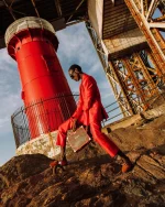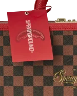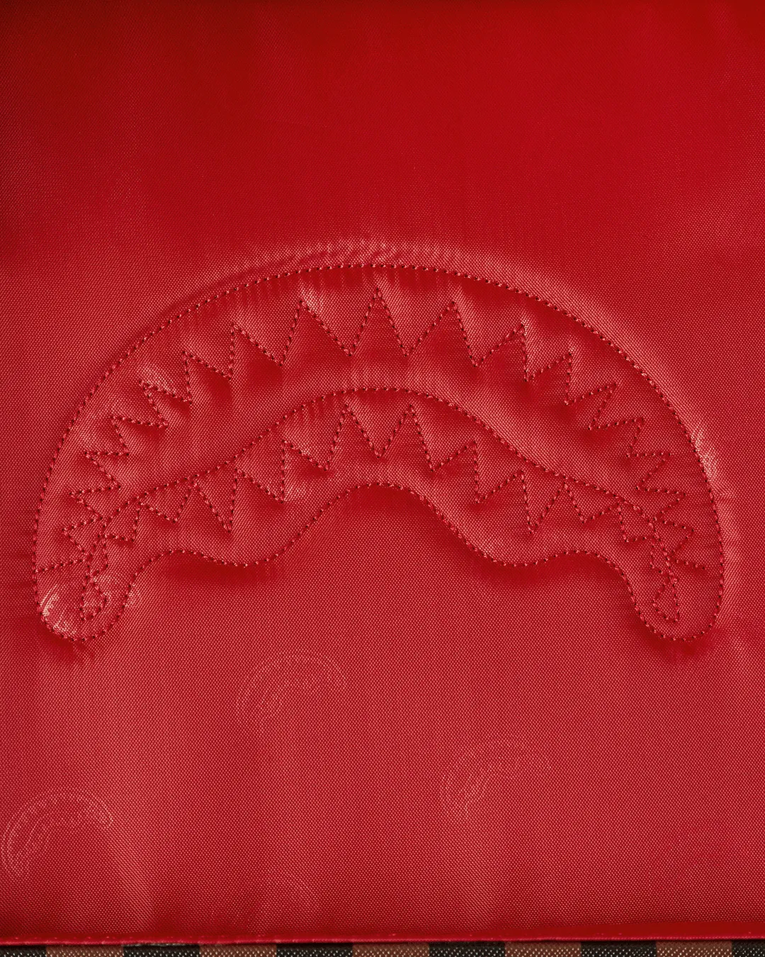 Customized Red Satin lining with Embossed Shark logo and Vegan leather trims