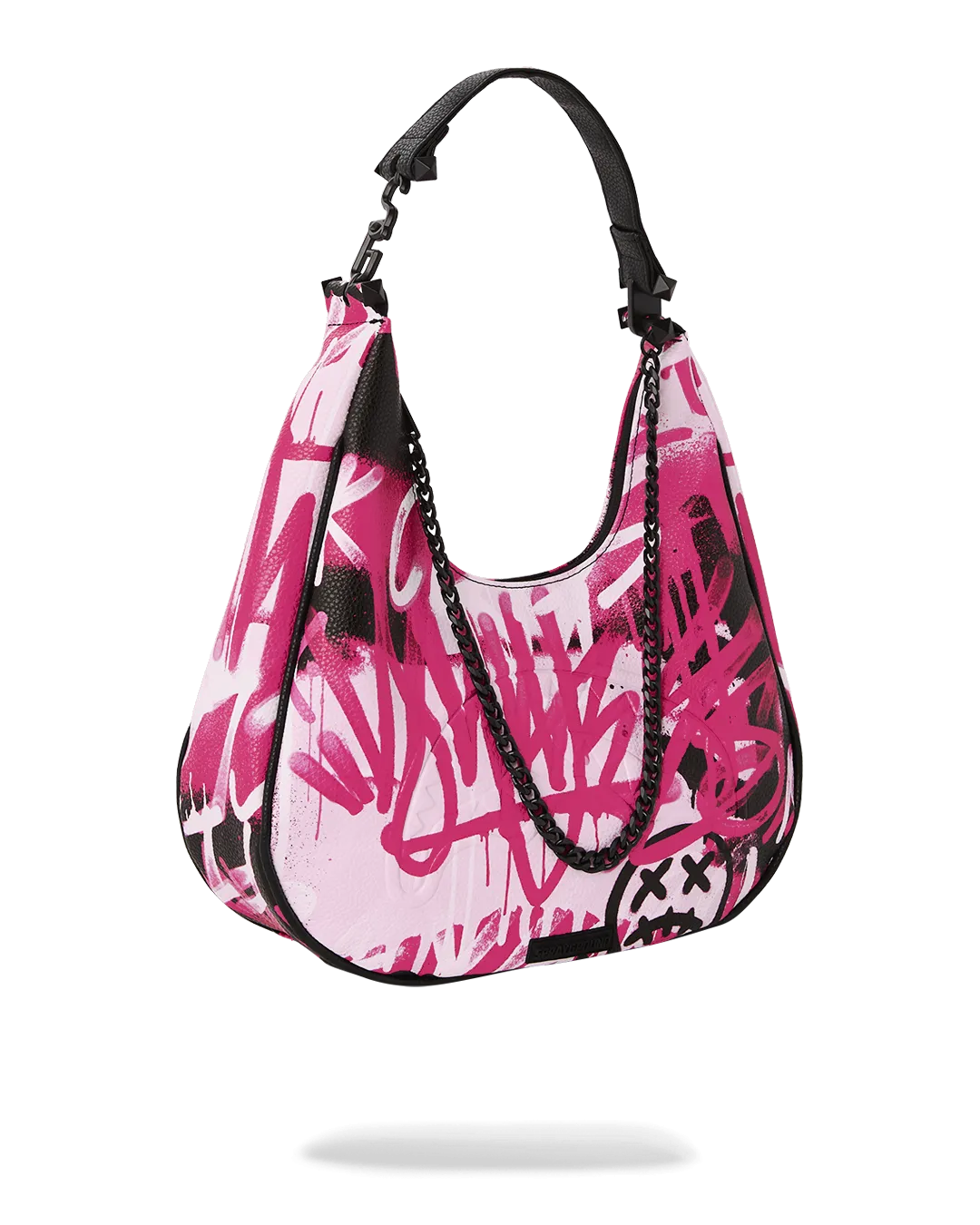 Gunmetal chain attached to the zipper, studs, and SG handle detail plus one interior pocket.