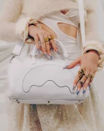 Dimensions: 9.5 ” H x 12.25 ” W x 6″ D (at bottom) new shape, adjustable crossbody strap, interior pockets – one zip pocket
