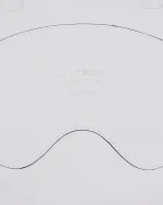 Cut and sew sharkmouth shape with embossed silver foil lettering.