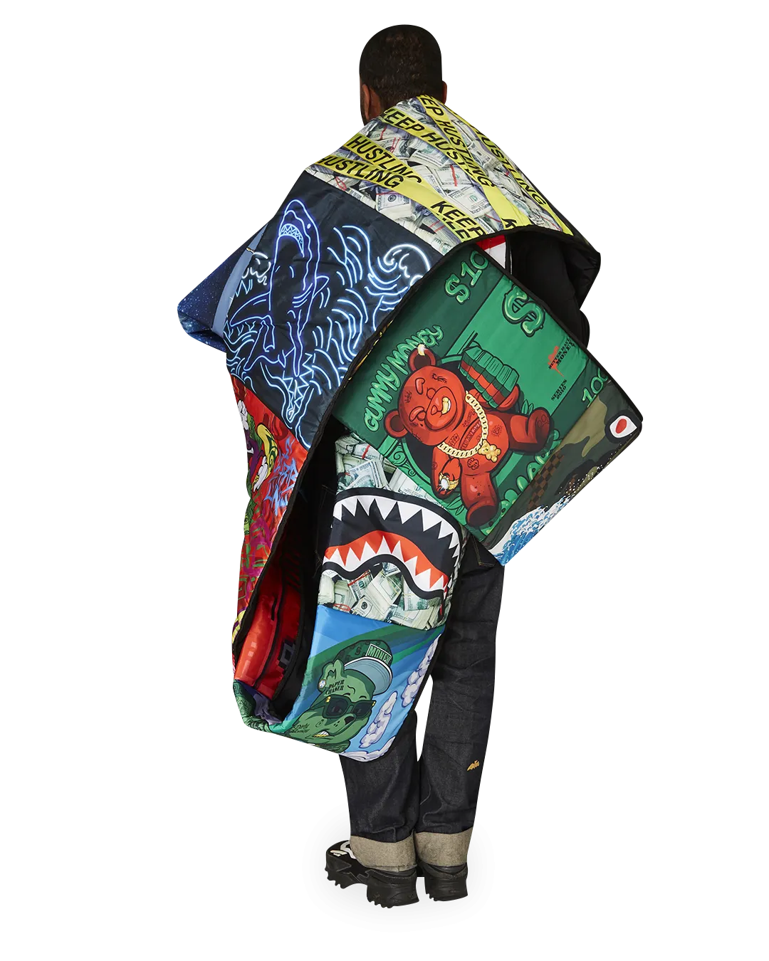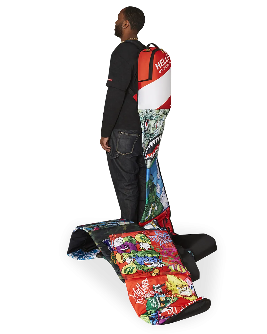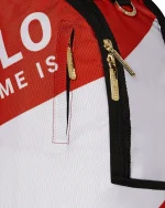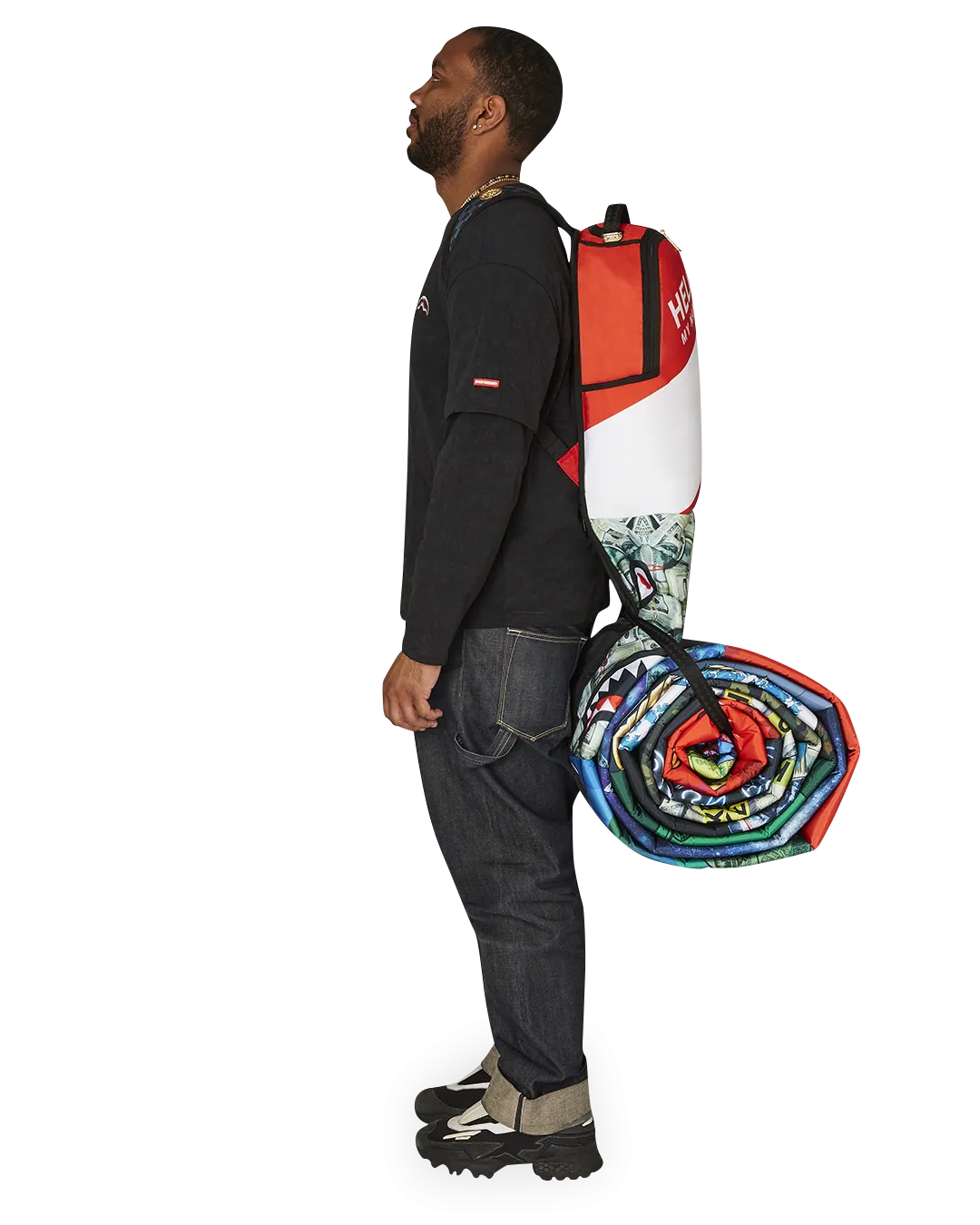 Dimensions: 18″ x 6″ x 11.5″ ? Front zipper pocket ? Side pockets ? Zippered Stash pocket ? Separate velour sunglass compartment ? Ergonomic mesh back padding ? Adjustable Straps for custom sizing ? Gold zippers with metal hardware ? Metal “Sprayground Authentic” badge ? Slide through back sleeve connects to carry-on luggage to free your hands