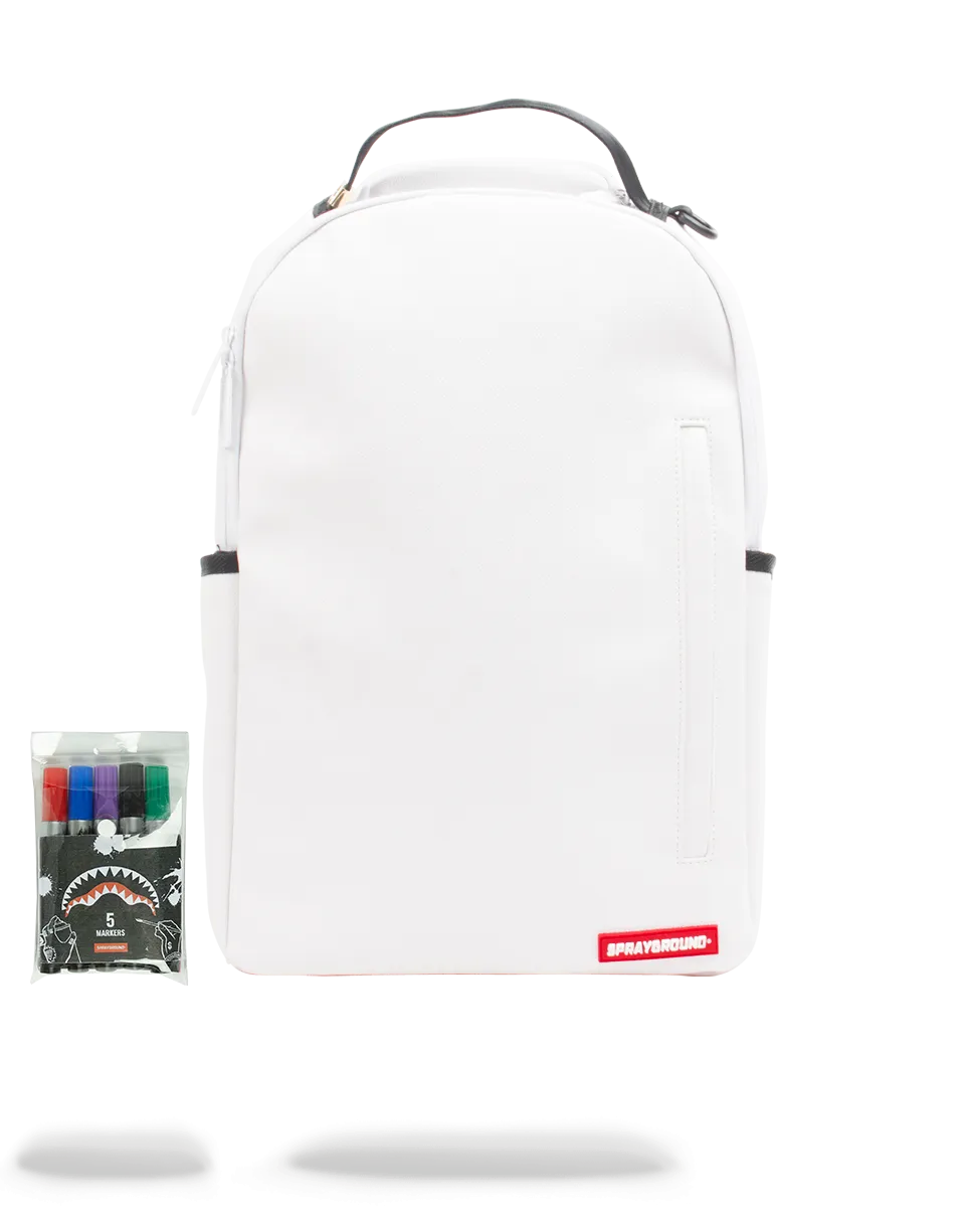 THE SPRAYGROUND DIY WHITE BACKPACK (VEGAN LEATHER & INNER MONEY LINING) & MARKERS INCLUDED