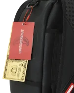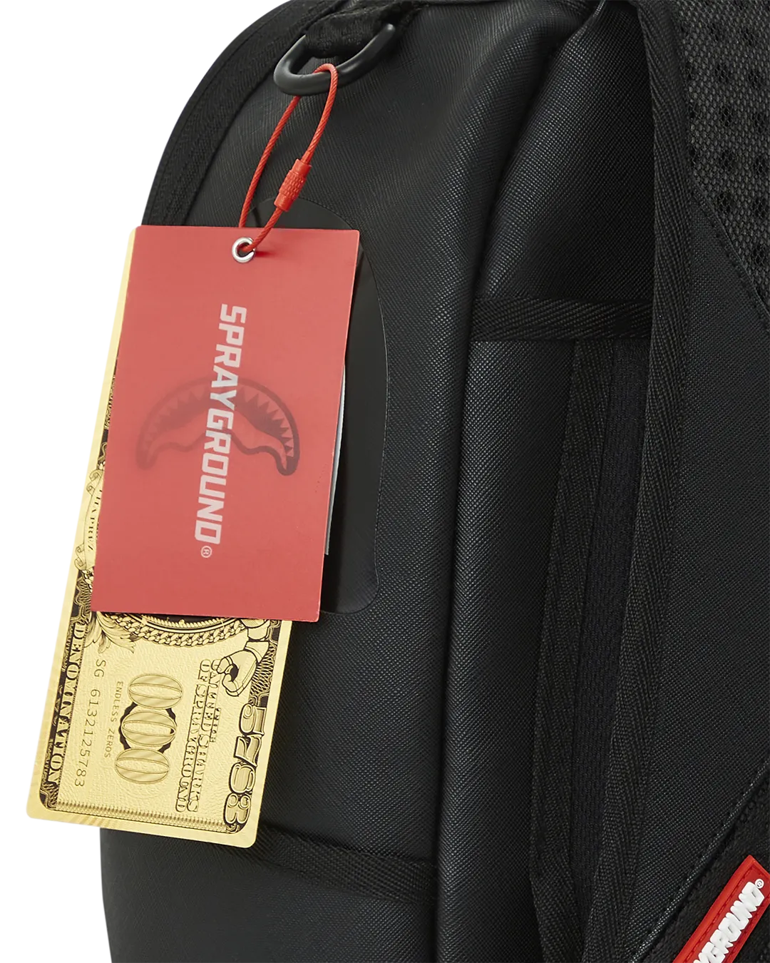 Dimensions: 18″ x 6″ x 11.5″ ? Front zipper pocket ? Side pockets ? Zippered Stash pocket ? Separate velour sunglass compartment ? Ergonomic mesh back padding ? Adjustable Straps for custom sizing ? Gold zippers with metal hardware ? Metal “Sprayground Authentic” badge ? Slide through back sleeve connects to carry-on luggage to free your hands