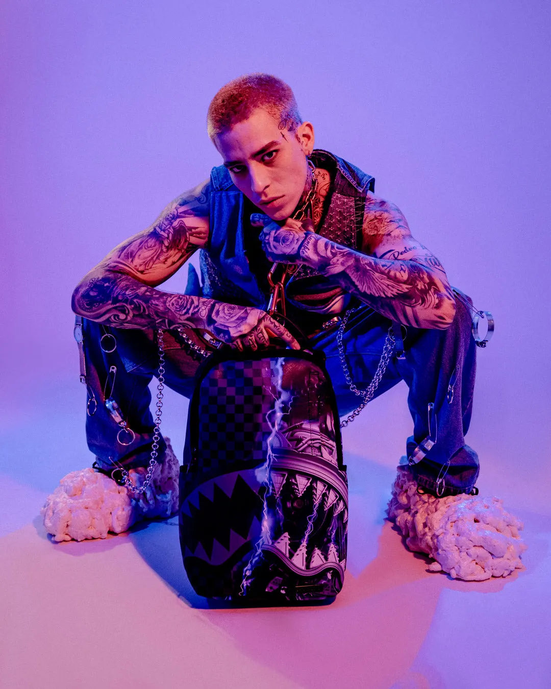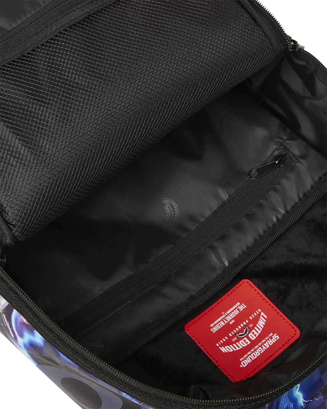 Dimensions: 18″ x 6″ x 11.5″ ? Front zipper pocket ? Side pockets ? Zippered Stash pocket ? Separate velour sunglass compartment ? Ergonomic mesh back padding ? Adjustable Straps for custom sizing ? Gold zippers with metal hardware ? Metal “Sprayground Authentic” badge ? Slide through back sleeve connects to carry-on luggage to free your hands