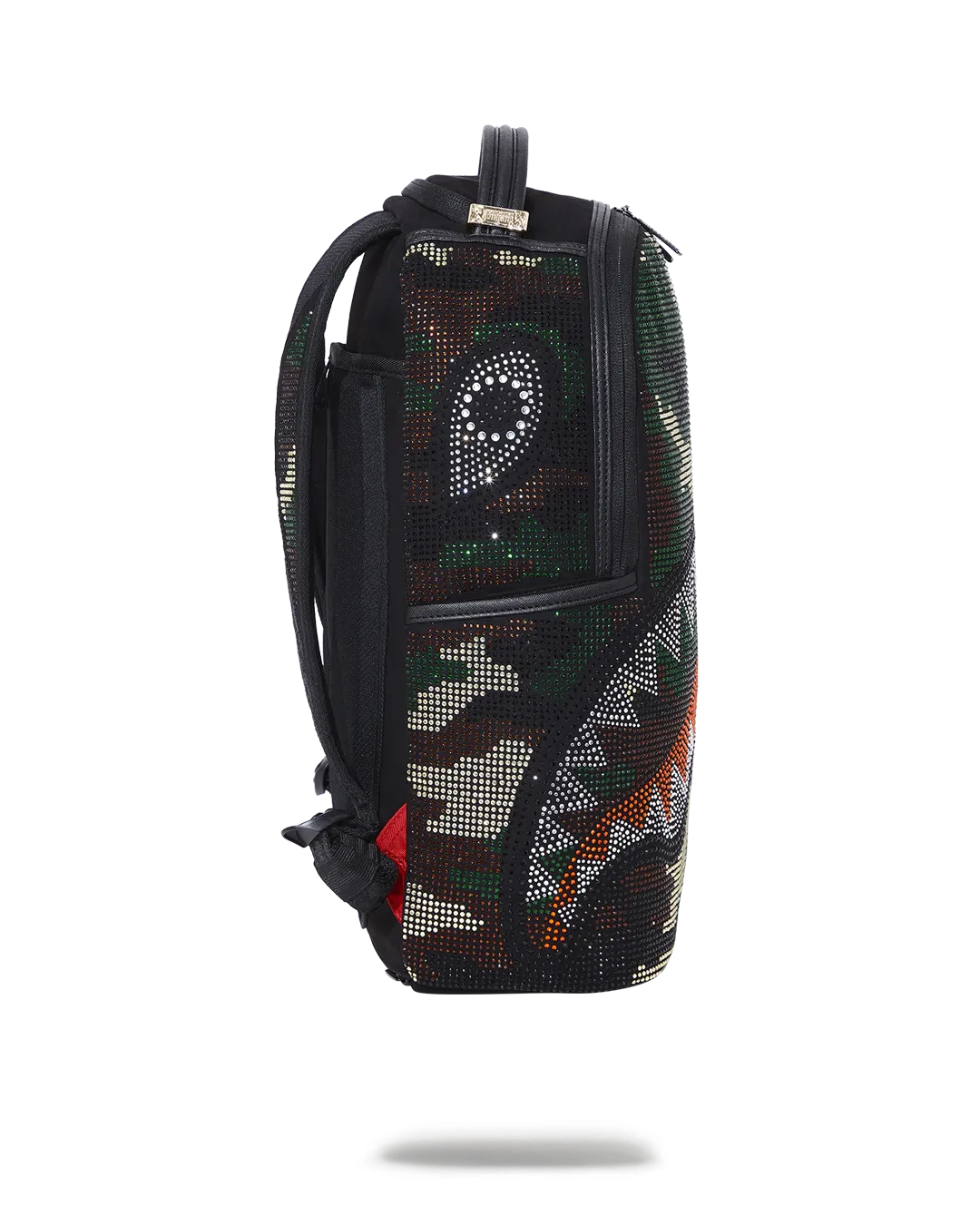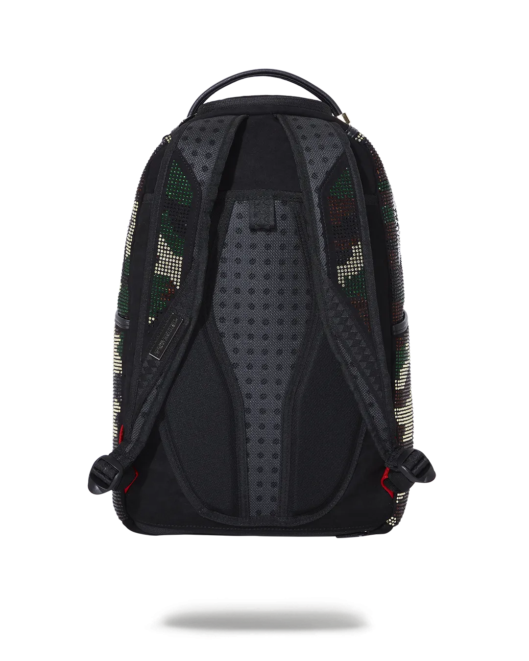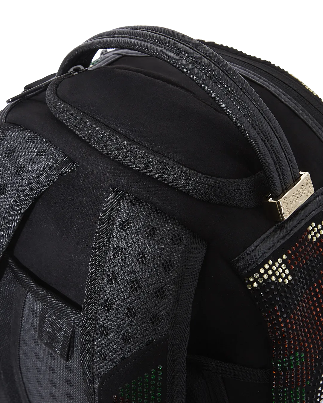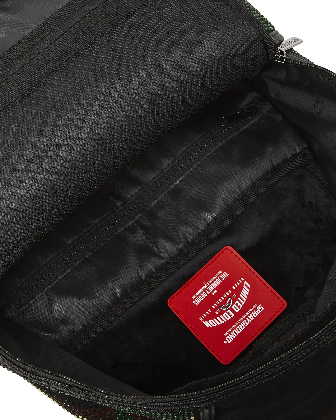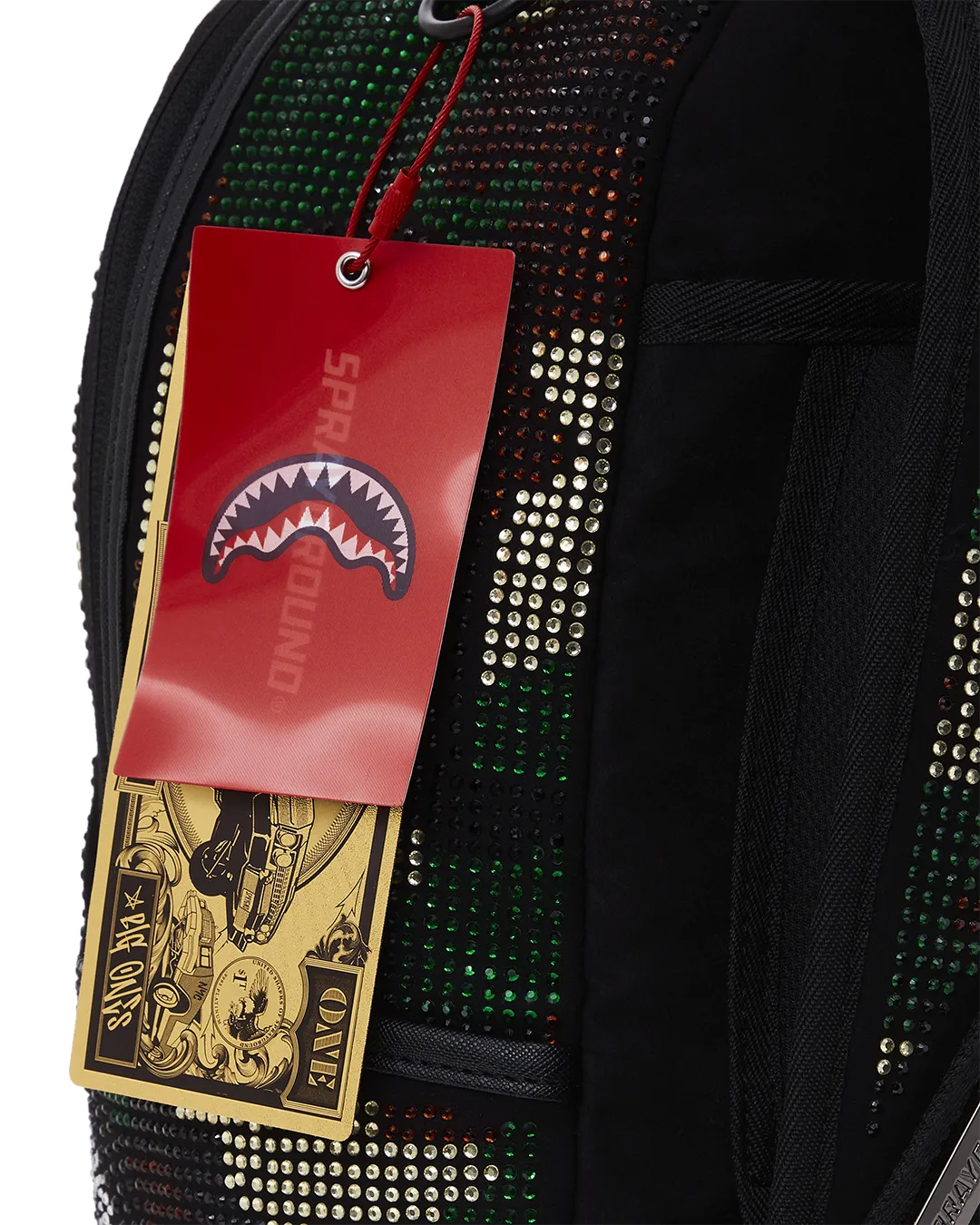 Dimensions: 18″ x 6″ x 11.5″ ? Front zipper pocket ? Side pockets ? Zippered Stash pocket ? Separate velour sunglass compartment ? Ergonomic mesh back padding ? Adjustable Straps for custom sizing ? Gold zippers with metal hardware ? Metal “Sprayground Authentic” badge ? Slide through back sleeve connects to carry-on luggage to free your hands