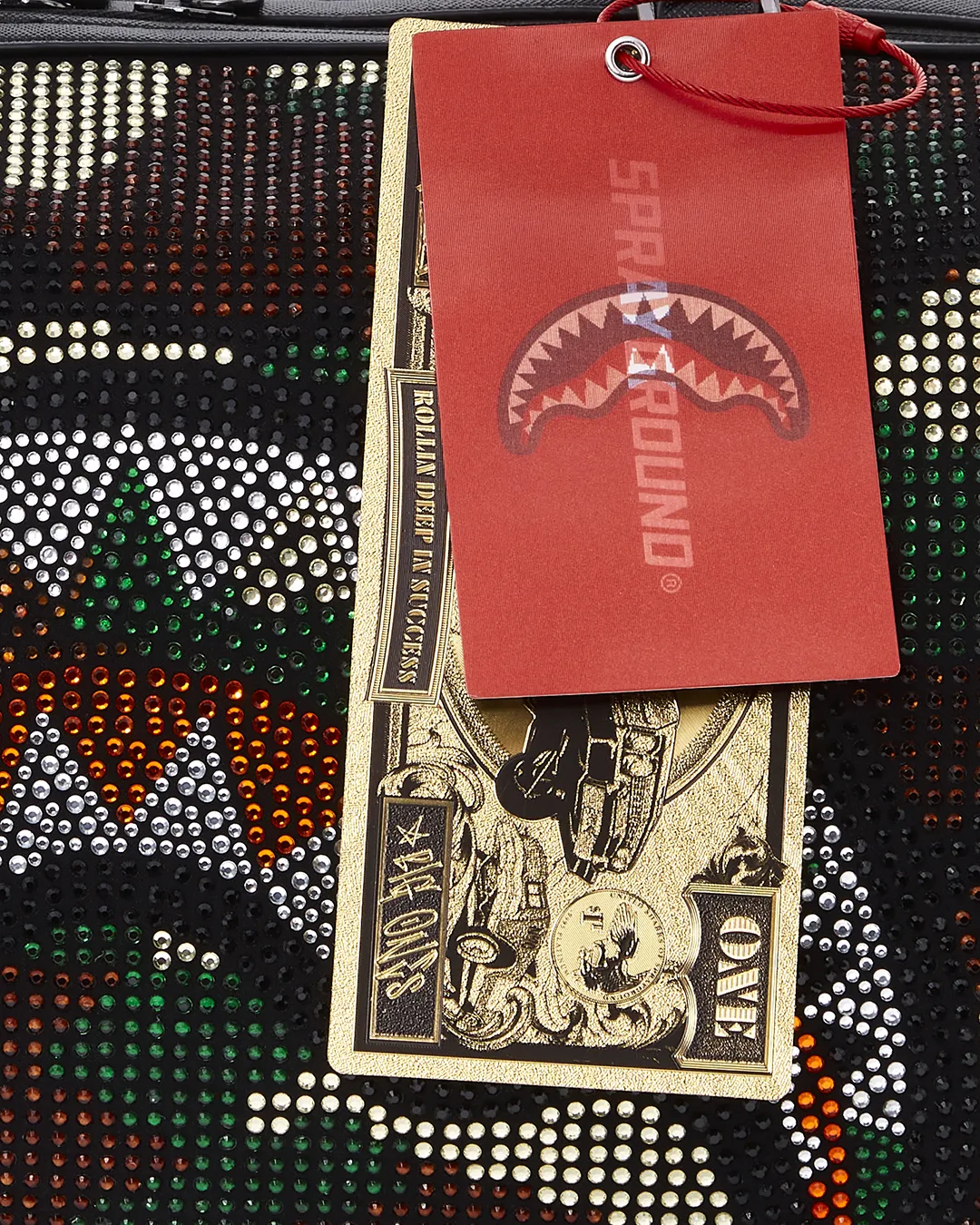 Dimensions: 8″ x 7.5″ x 13″?? Metal zipper pocket??Back Zippers ?Zippered sneaker pocket ? gold zippers ? Adjustable Straps for custom sizing ?Metal Zippers with Metal Hardware ? bag of Sprayground money