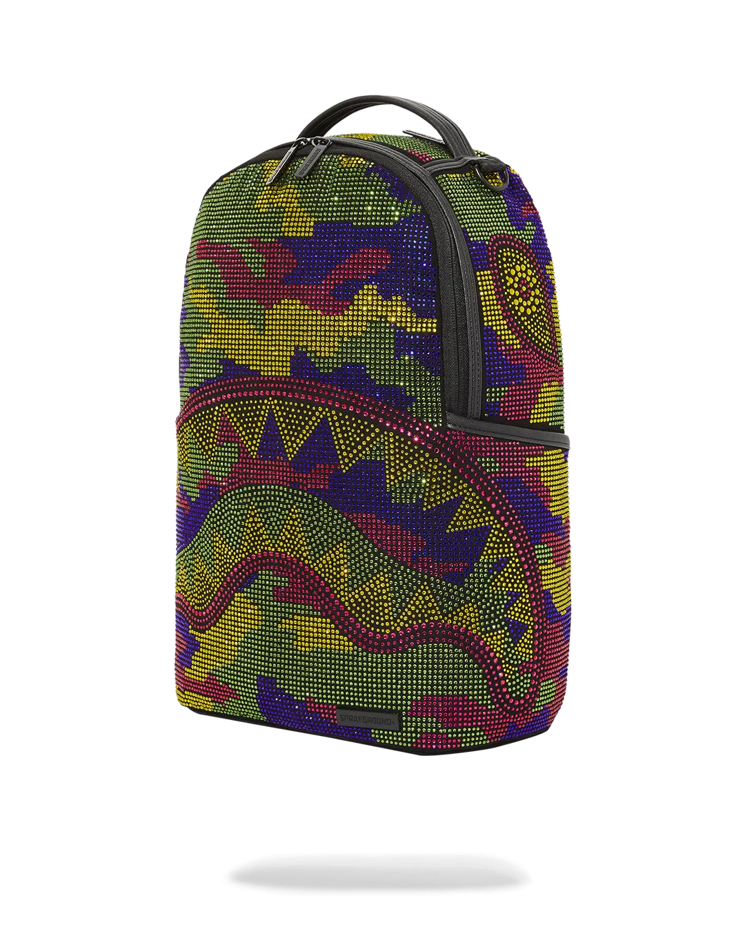 Dimensions: 18″ x 6″ x 11.5″ ? Front zipper pocket ? Side pockets ? Zippered Stash pocket ? Separate velour sunglass compartment ? Ergonomic mesh back padding ? Adjustable Straps for custom sizing ? Gold zippers with metal hardware ? Metal “Sprayground Authentic” badge ? Slide through back sleeve connects to carry-on luggage to free your hands