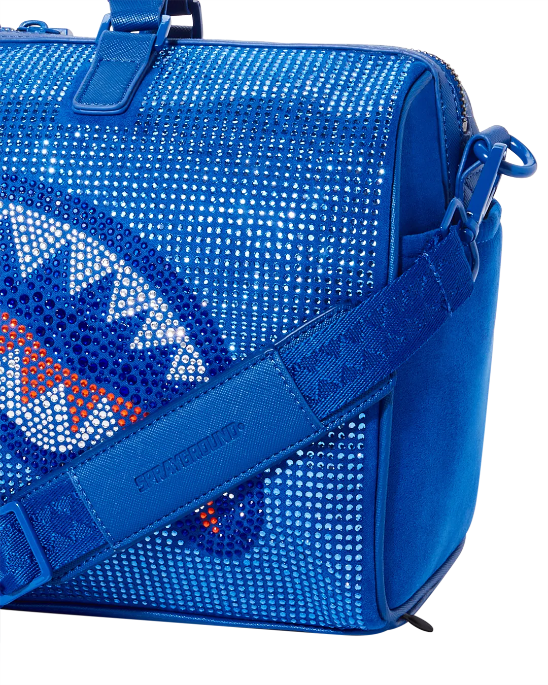Dimensions: 8″ x 7.5″ x 13″ ? Zippered top opening ? Zippered pocket on back panel ? Zippered side pocket ? Removable adjustable strap for custom sizing with reinforced crossbody construction ? Logo embossed shoulder pad for comfort ? Gold zippers with metal hardware ? Zippered stash pocket