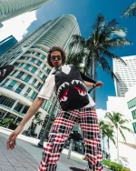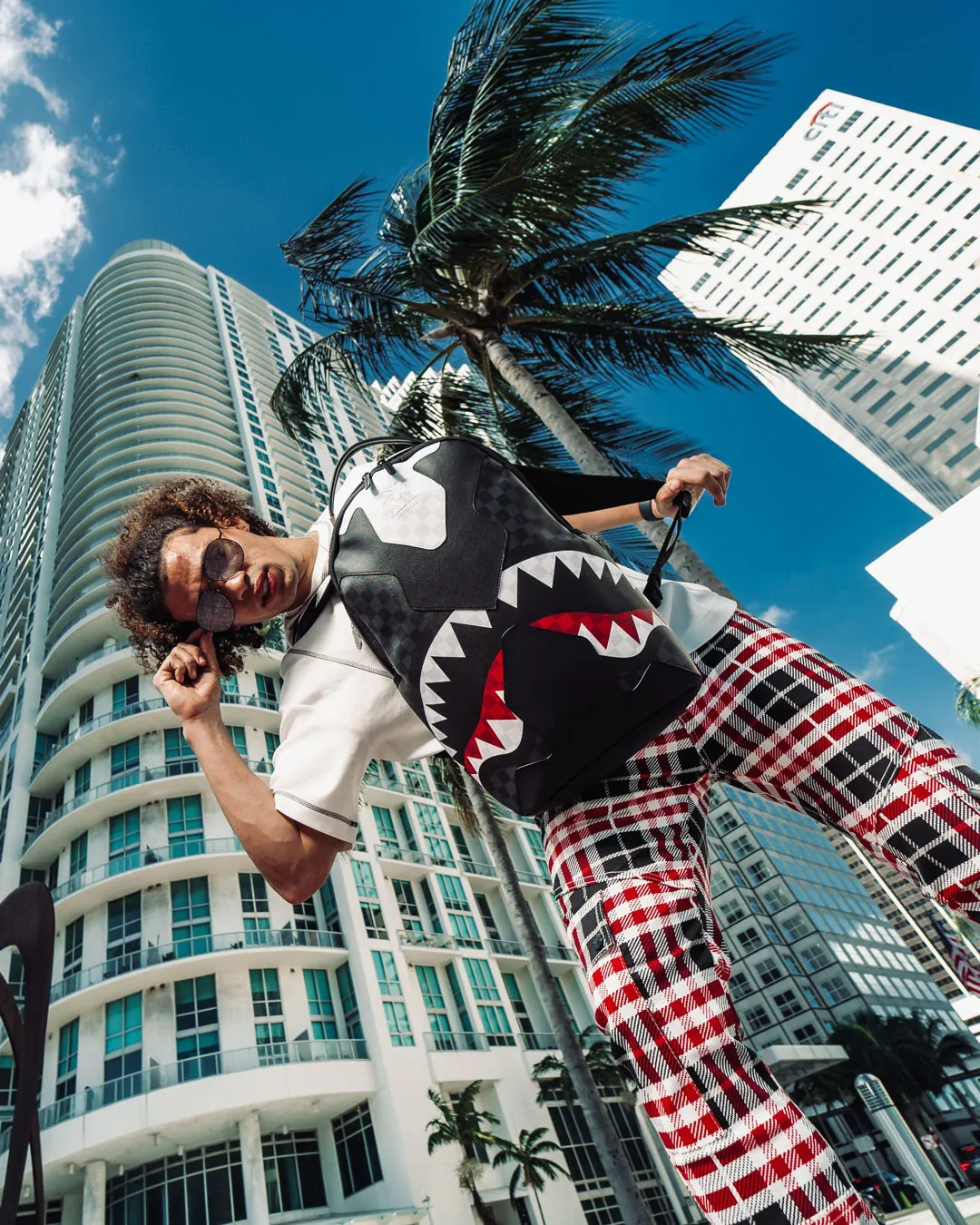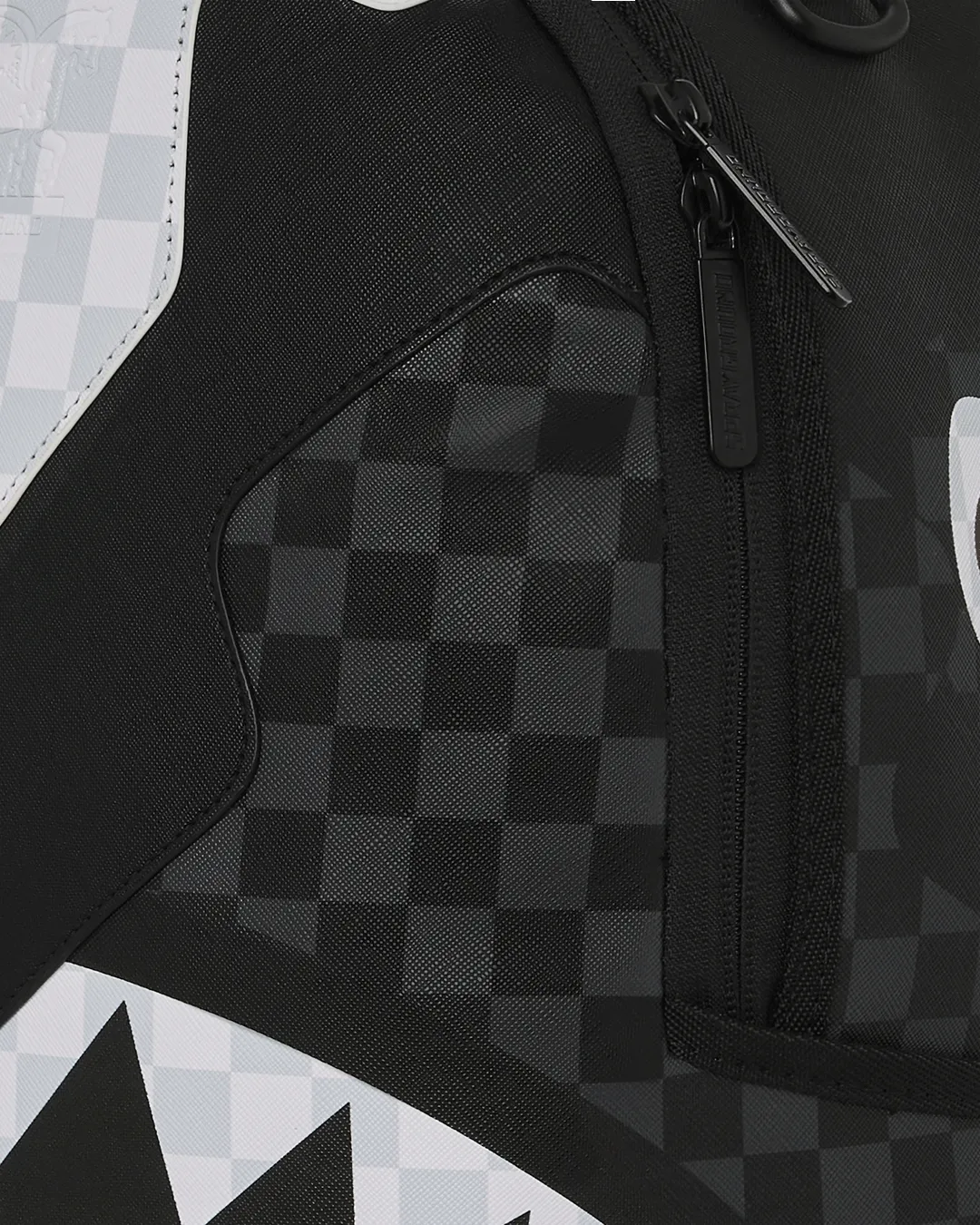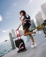 Dimensions: 18″ x 6″ x 11.5″ ? Front zipper pocket ? Side pockets ? Zippered Stash pocket ? Separate velour sunglass compartment ? Ergonomic mesh back padding ? Adjustable Straps for custom sizing ? Gold zippers with metal hardware ? Metal “Sprayground Authentic” badge ? Slide through back sleeve connects to carry-on luggage to free your hands
