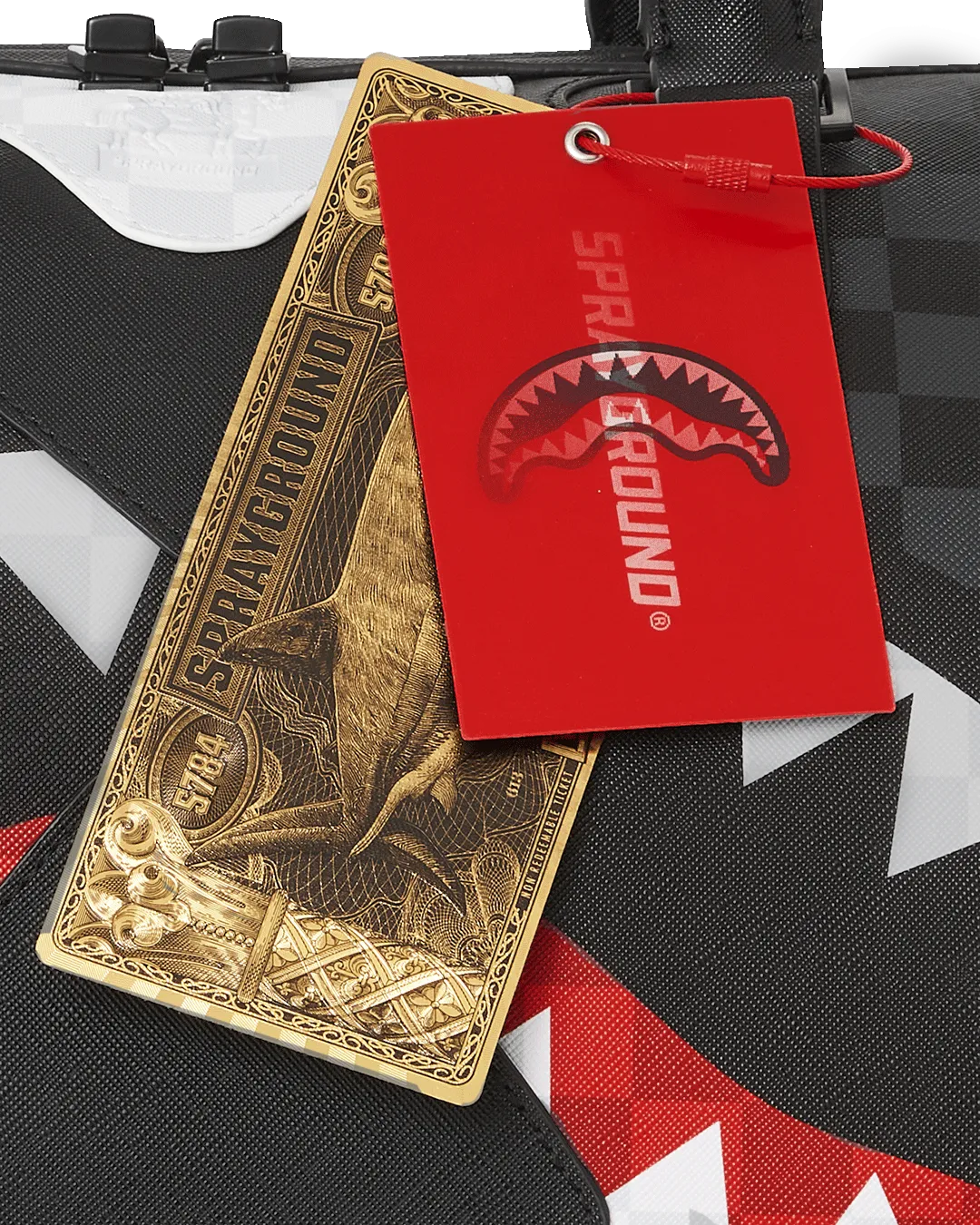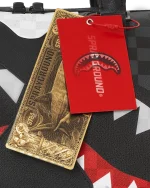 Dimensions: 20″ x 10″ x 10.75″ ? Metal zipper pocket??Back Zippers ?Zippered sneaker pocket ? gold zippers ? Adjustable Straps for custom sizing ?Metal Zippers with Metal Hardware ? bag of Sprayground money