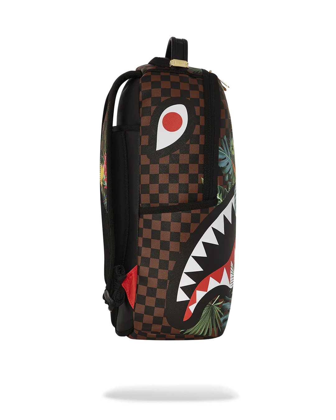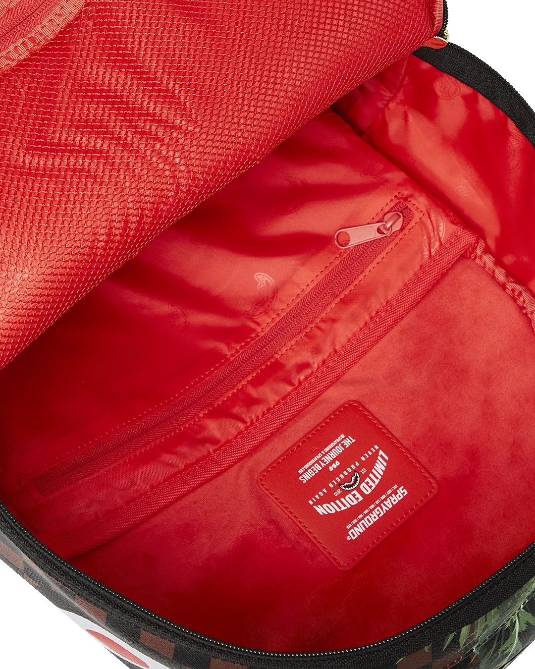 Dimensions: 18″ x 6″ x 11.5″ ? Front zipper pocket ? Side pockets ? Zippered Stash pocket ? Separate velour sunglass compartment ? Ergonomic mesh back padding ? Adjustable Straps for custom sizing ? Gold zippers with metal hardware ? Metal “Sprayground Authentic” badge ? Slide through back sleeve connects to carry-on luggage to free your hands
