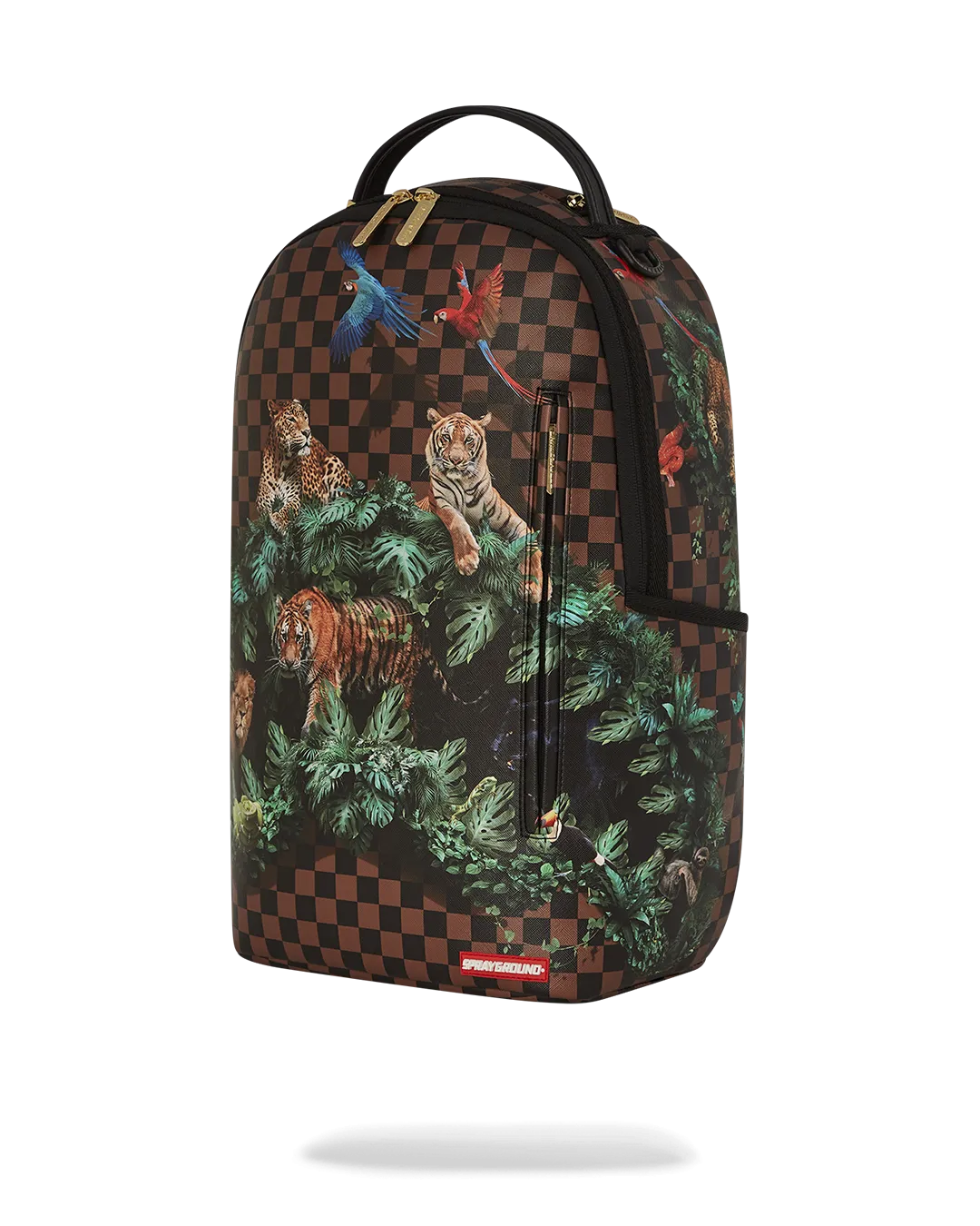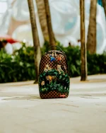 Dimensions: 18″ x 6″ x 11.5″ ? Front zipper pocket ? Side pockets ? Zippered Stash pocket ? Separate velour sunglass compartment ? Ergonomic mesh back padding ? Adjustable Straps for custom sizing ? Gold zippers with metal hardware ? Metal “Sprayground Authentic” badge ? Slide through back sleeve connects to carry-on luggage to free your hands