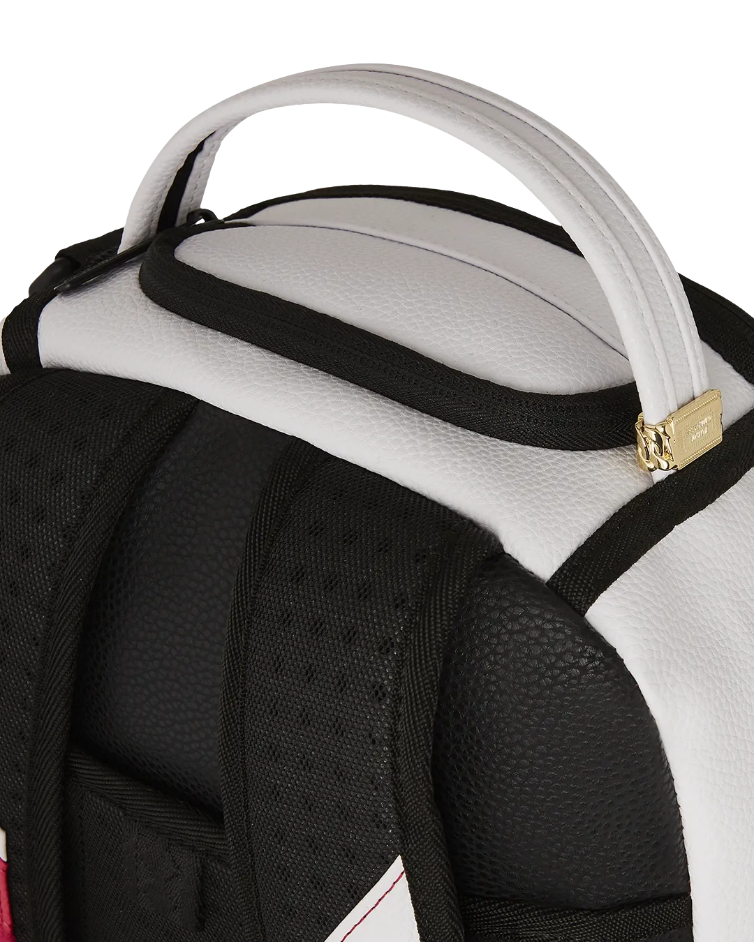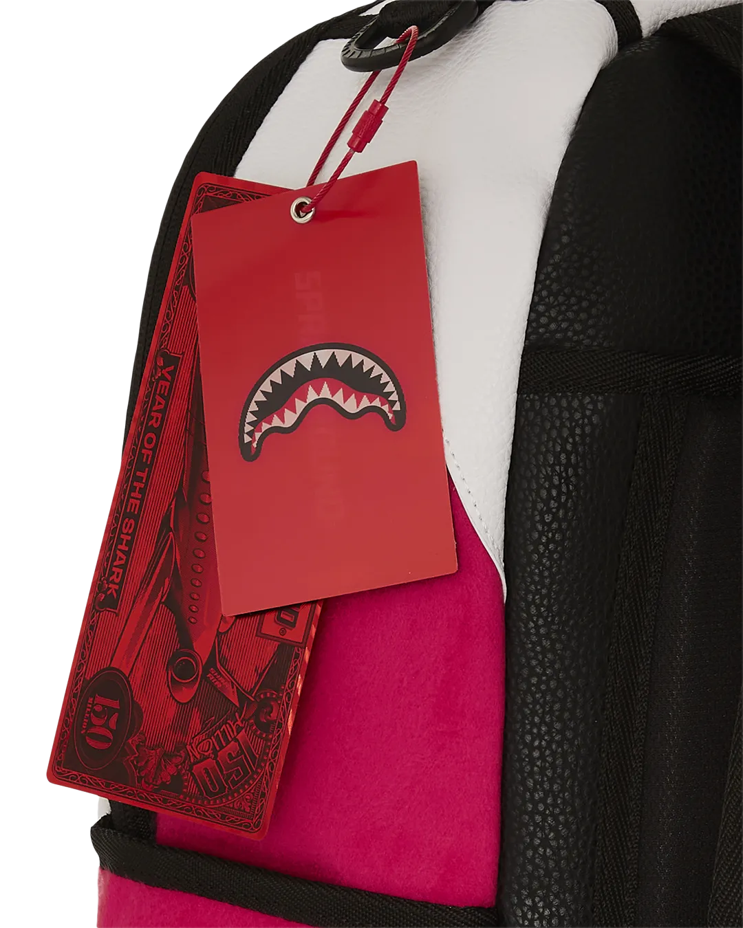 Dimensions: 18″ x 6″ x 11.5″ ? Front zipper pocket ? Side pockets ? Zippered Stash pocket ? Separate velour sunglass compartment ? Ergonomic mesh back padding ? Adjustable Straps for custom sizing ? Gold zippers with metal hardware ? Metal “Sprayground Authentic” badge ? Slide through back sleeve connects to carry-on luggage to free your hands