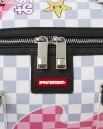 Dimensions: 8″ x 7.5″ x 13″?? Metal zipper pocket??Back Zippers ?Zippered sneaker pocket ? gold zippers ? Adjustable Straps for custom sizing ?Metal Zippers with Metal Hardware ? bag of Sprayground money