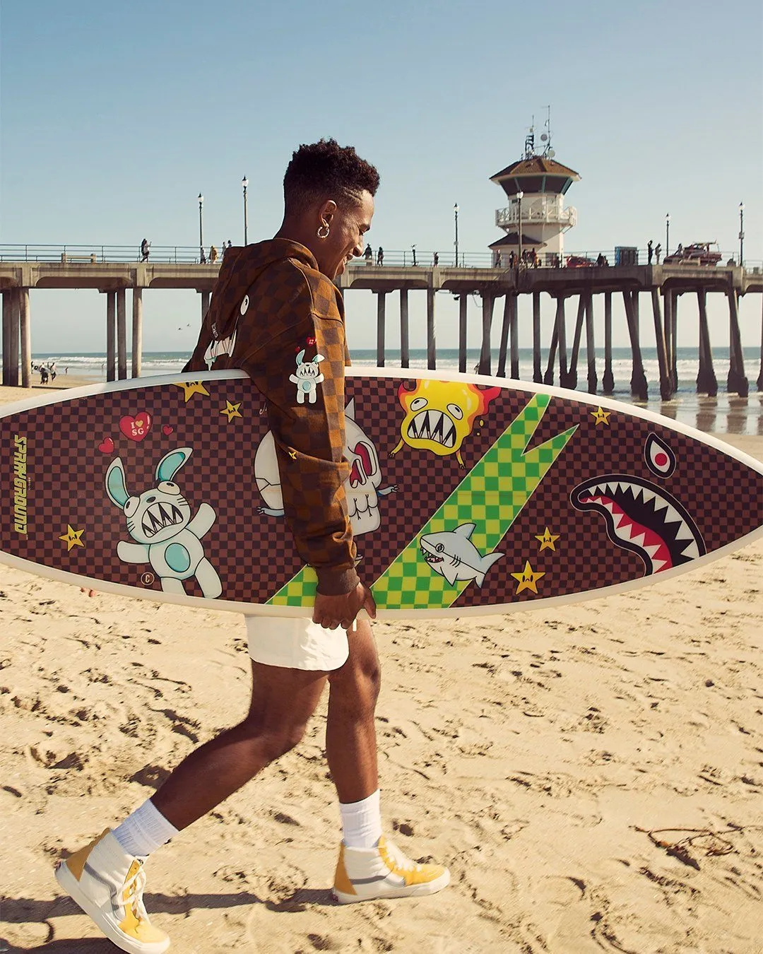 Phantom thruster Surfboard by shaper David Lopez from ALONG Custom Shapes for Sprayground. Super Limited Edition in our Unique WTF Whiskey Tango Foxtrot Artwork.