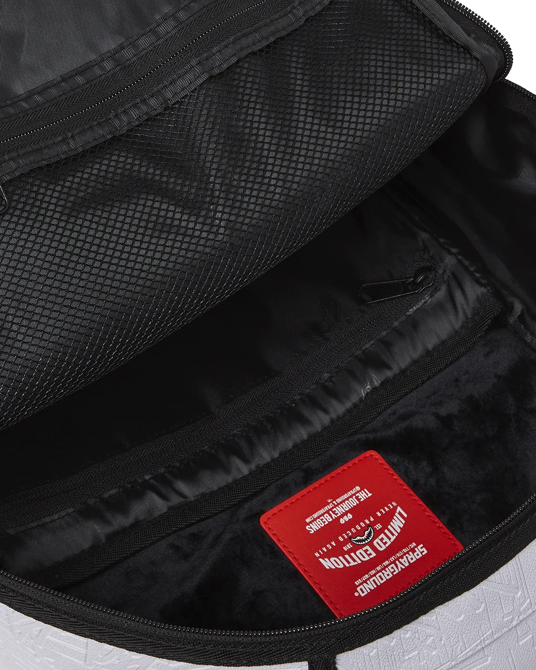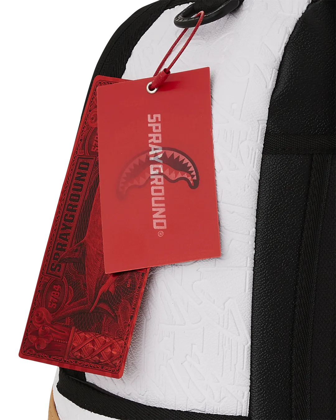 Dimensions: 18″ x 6″ x 11.5″ ? Front zipper pocket ? Side pockets ? Zippered Stash pocket ? Separate velour sunglass compartment ? Ergonomic mesh back padding ? Adjustable Straps for custom sizing ? Gold zippers with metal hardware ? Metal “Sprayground Authentic” badge ? Slide through back sleeve connects to carry-on luggage to free your hands
